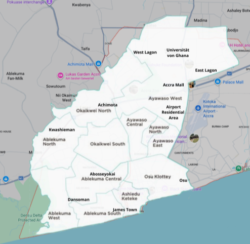 Accras wichtigste Stadtteile